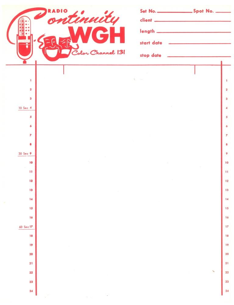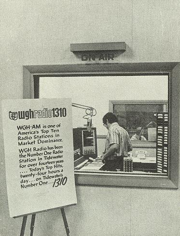 in the WGH-AM on-air studio in the new studio wing that was constructed in 1963.
