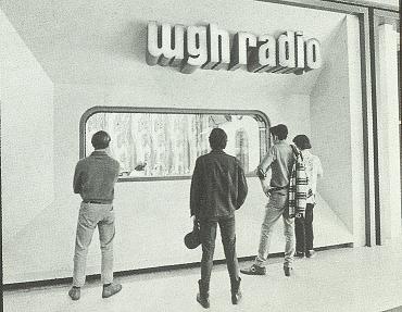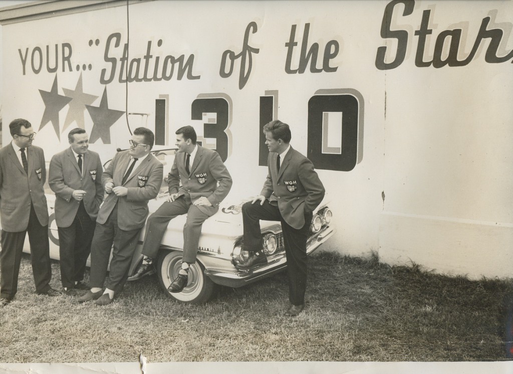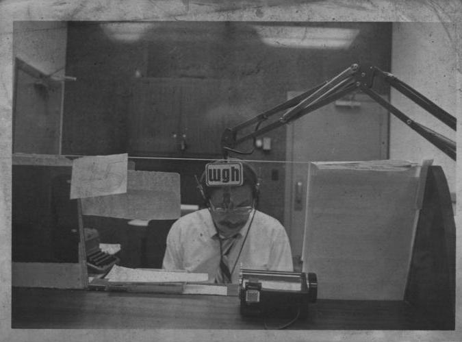 an early WGH-FM studio. Note the WGH-FM mic flag and the