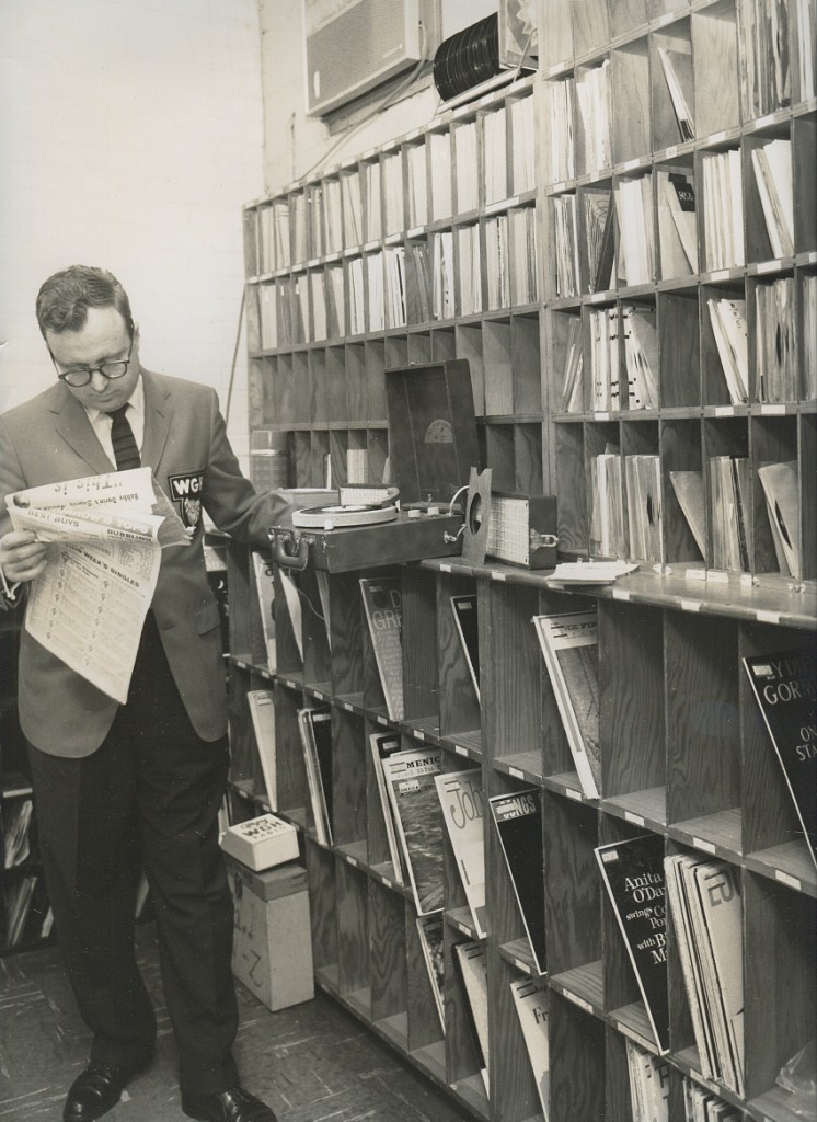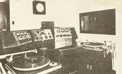 Turtle" Lewis in the main AM studio. The calendar is from March