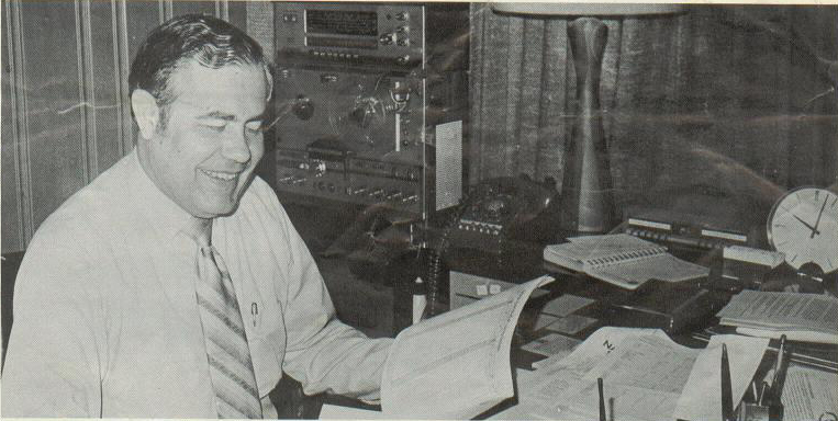 General Manager Ambert Dail, reading the Spring 1971 Arbitron survey showing WGH number one for the 14th consecutive year.